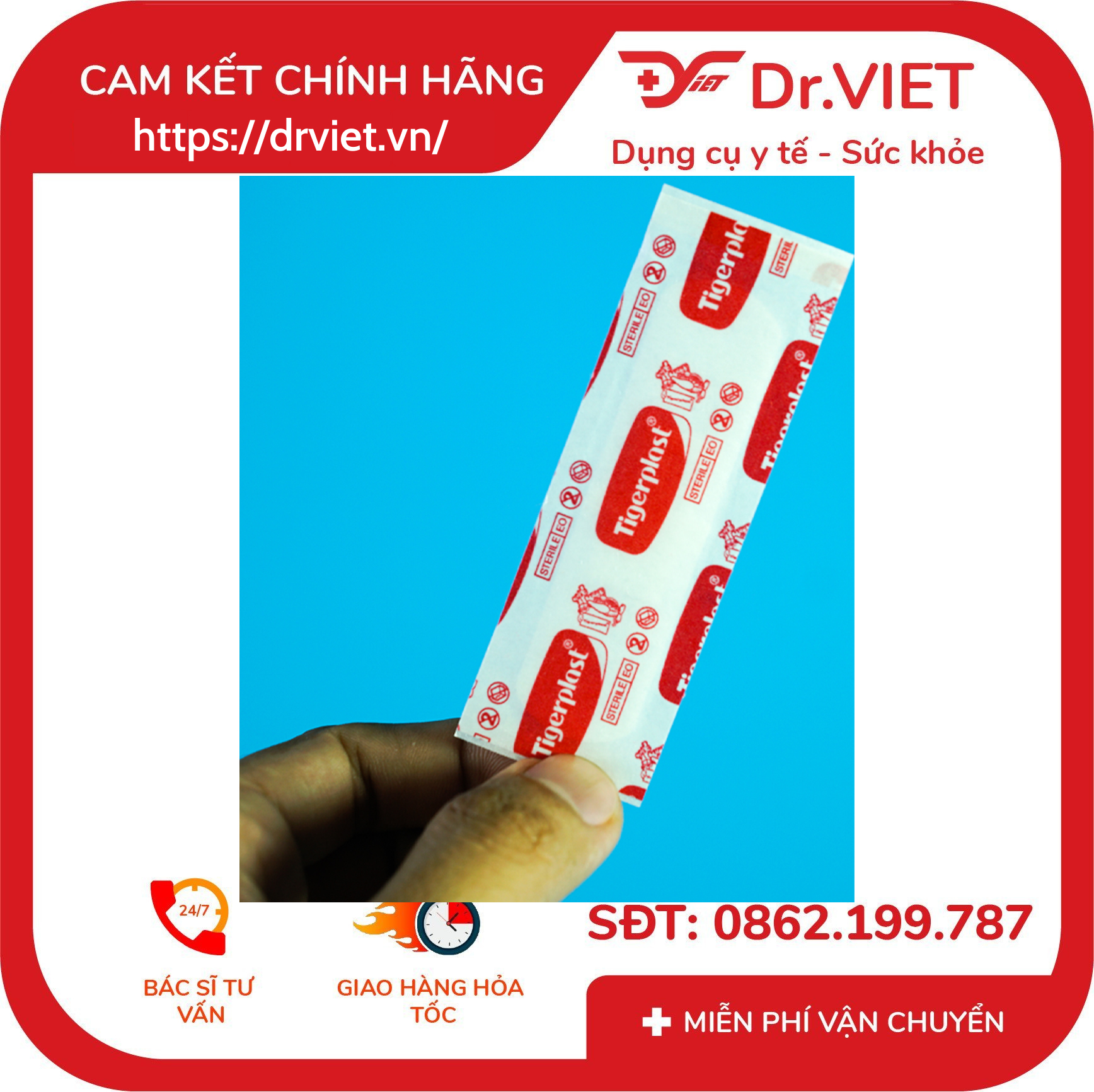 Băng cá nhân co giãn Tigerplast Sensitive Hộp 10 cái 19x72mm: Bảo vệ các vết thương, vết trầy xước, rách da. Chống thấm nước 100%HDSD: Làm sạch vết thương và vùng da xung quanh, bóc lớp bảo vệ băng từ giữa, dán lên vùng vết thương, gỡ lớp nhựa phía trên màu hồng. Thay băng mỗi ngày.