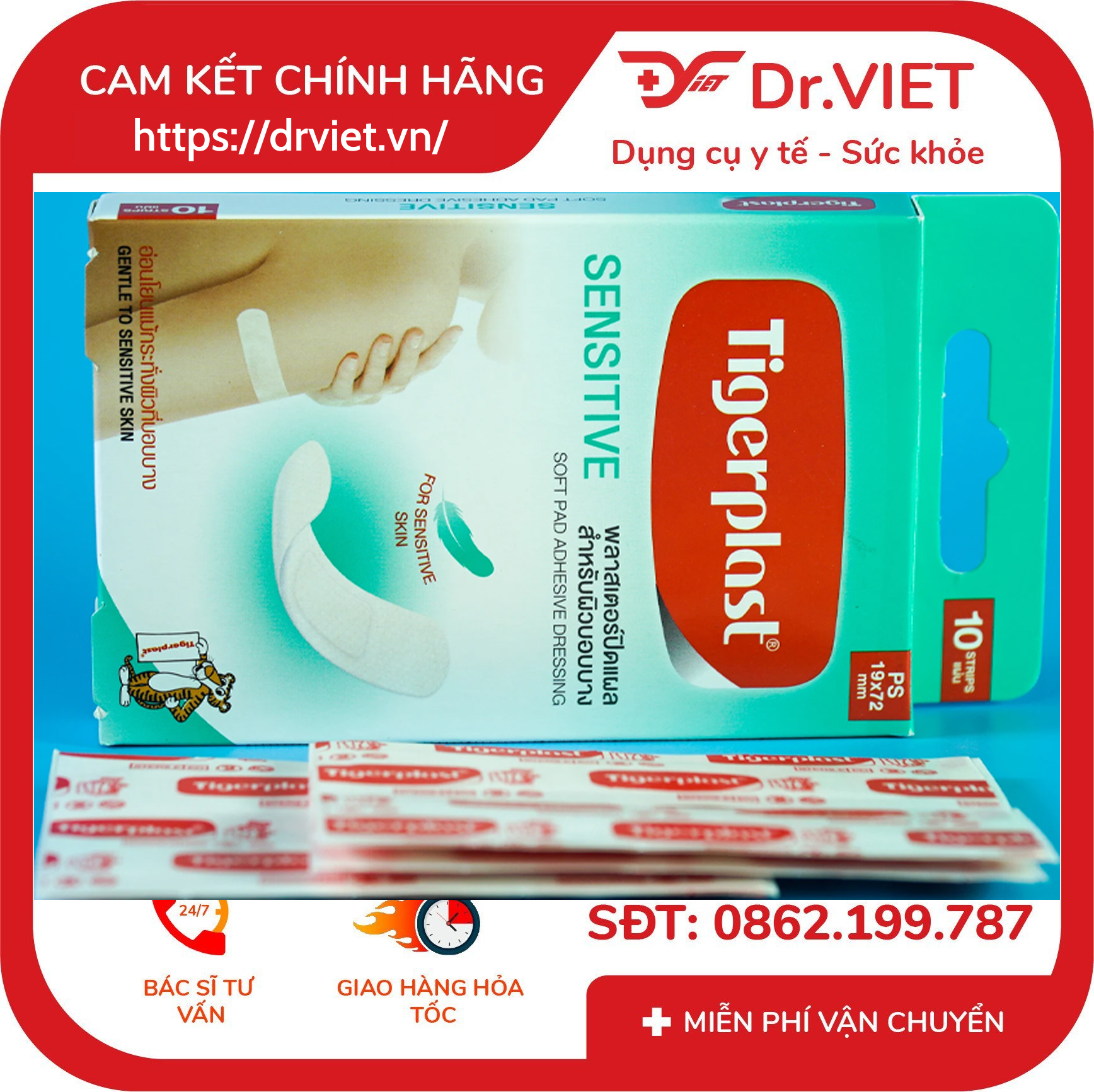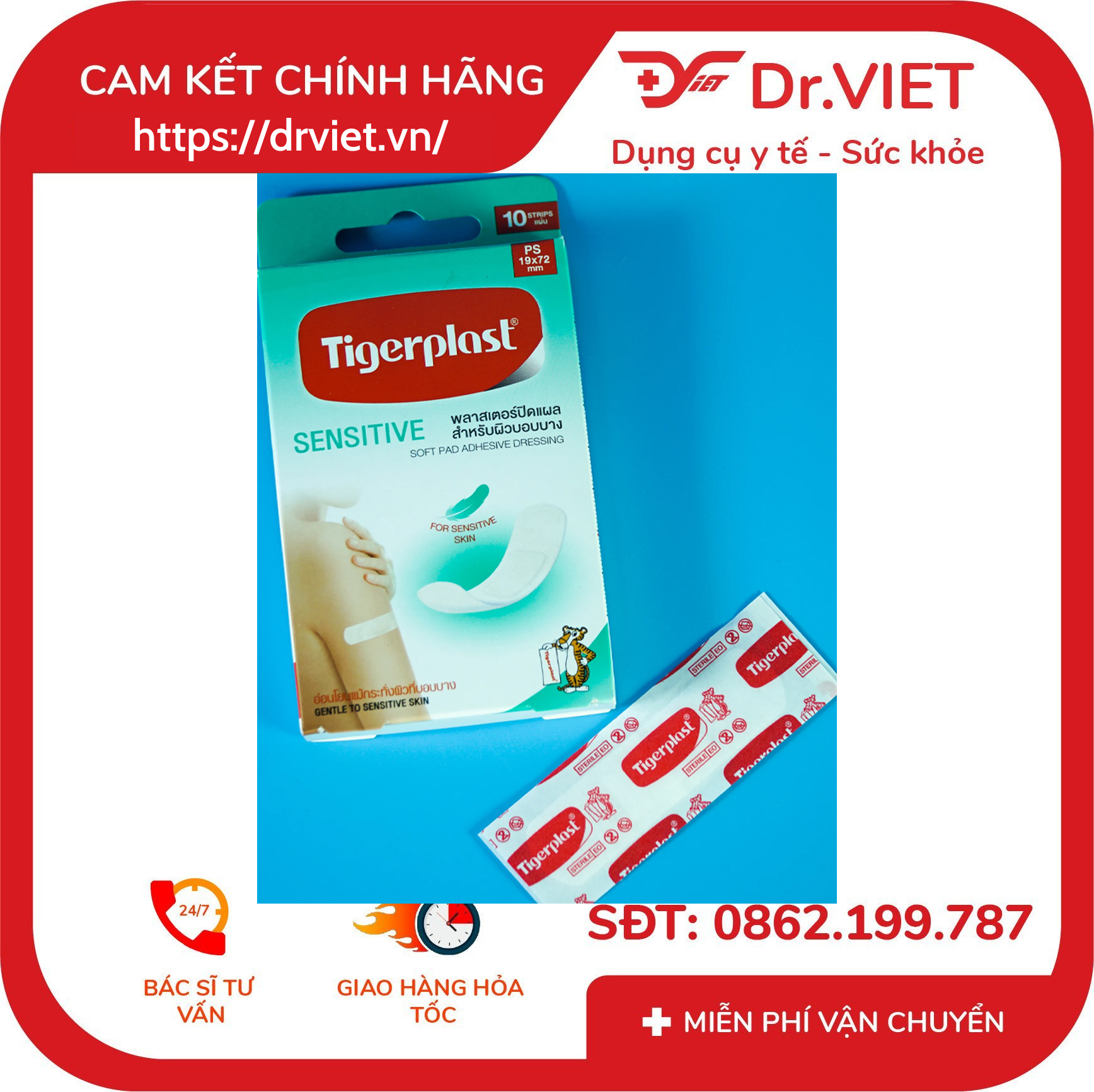 Băng cá nhân co giãn Tigerplast Sensitive Hộp 10 cái 19x72mm