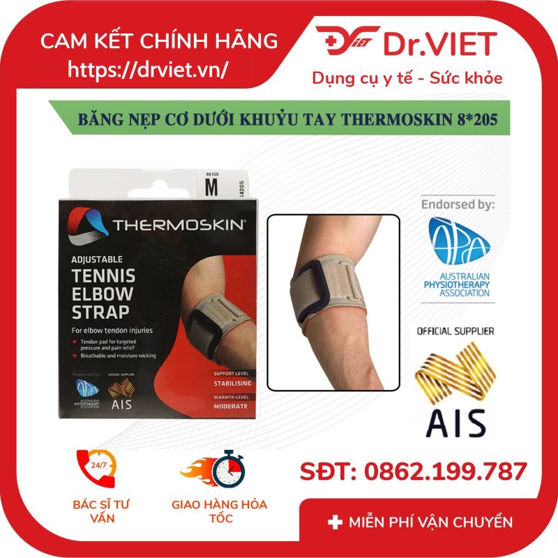CHẤT LIỆU SẢN PHẨM Băng nẹp cơ dưới khuỷu tay Thermoskin 8*205 Adjustable Tennis Elbow Strap