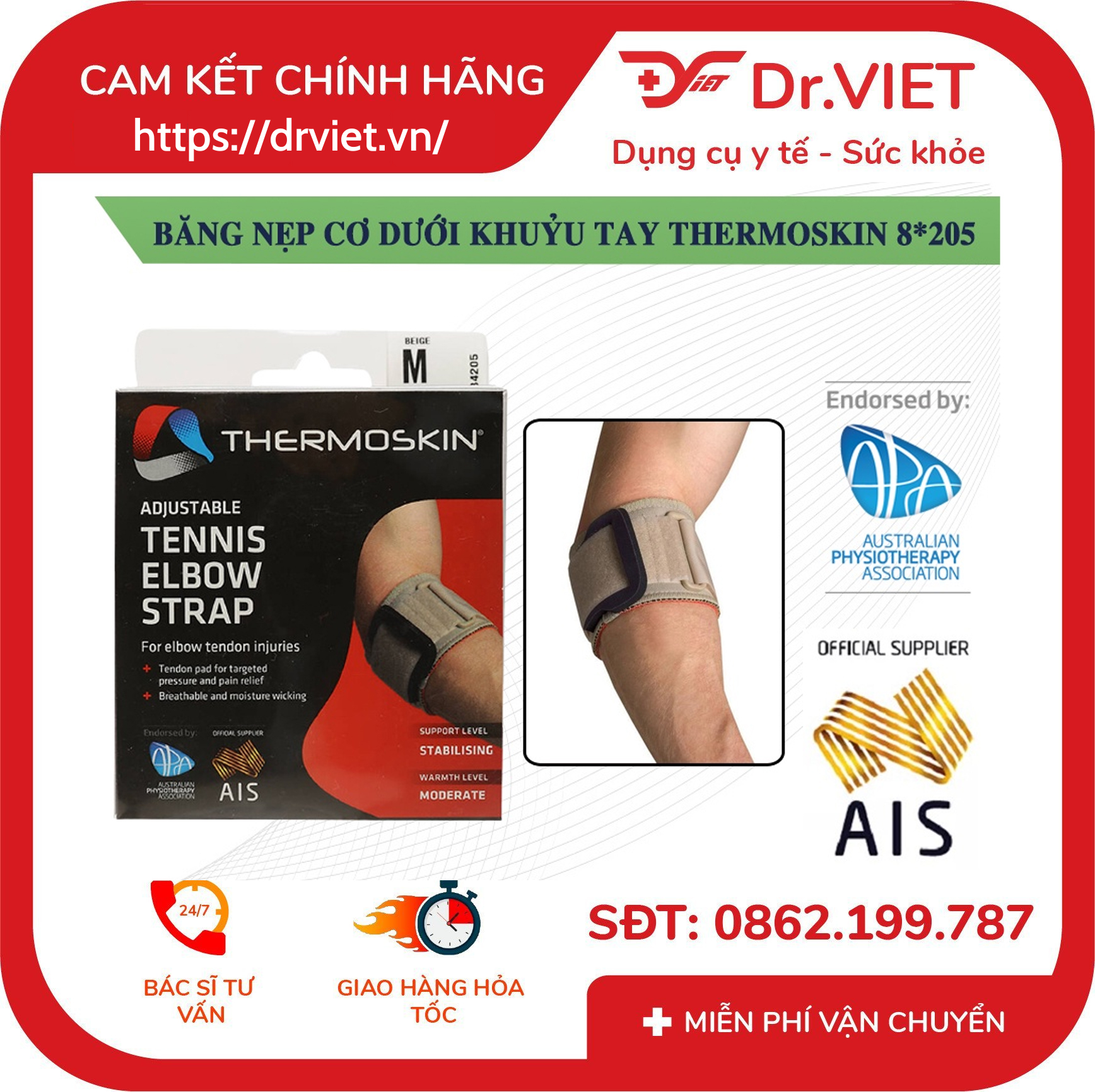 - Sản phẩm được sản xuất tại Thái Lan theo công nghệ của Thermoskin – Australia