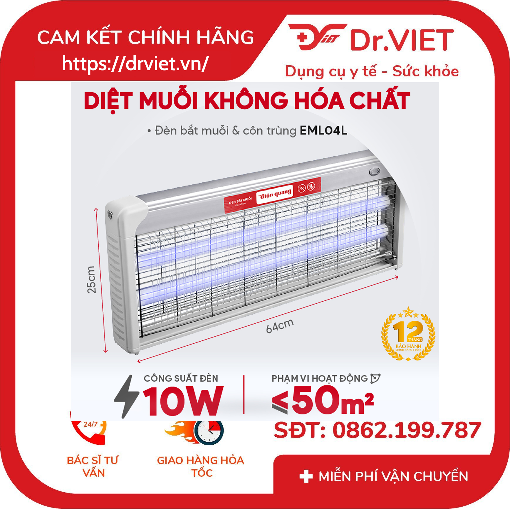 Đèn bắt muỗi Điện Quang ĐQ EML04L: là thiết bị không dùng hóa chất nhưng lại có khả năng đuổi muỗi rất hiệu quả. Máy được thiết kế với kích cỡ lớn, lưới điện và bóng đèn dài, giúp diệt muỗi nhanh chóng, bảo vệ sức khỏe cho các thành viên trong gia đình bạn.