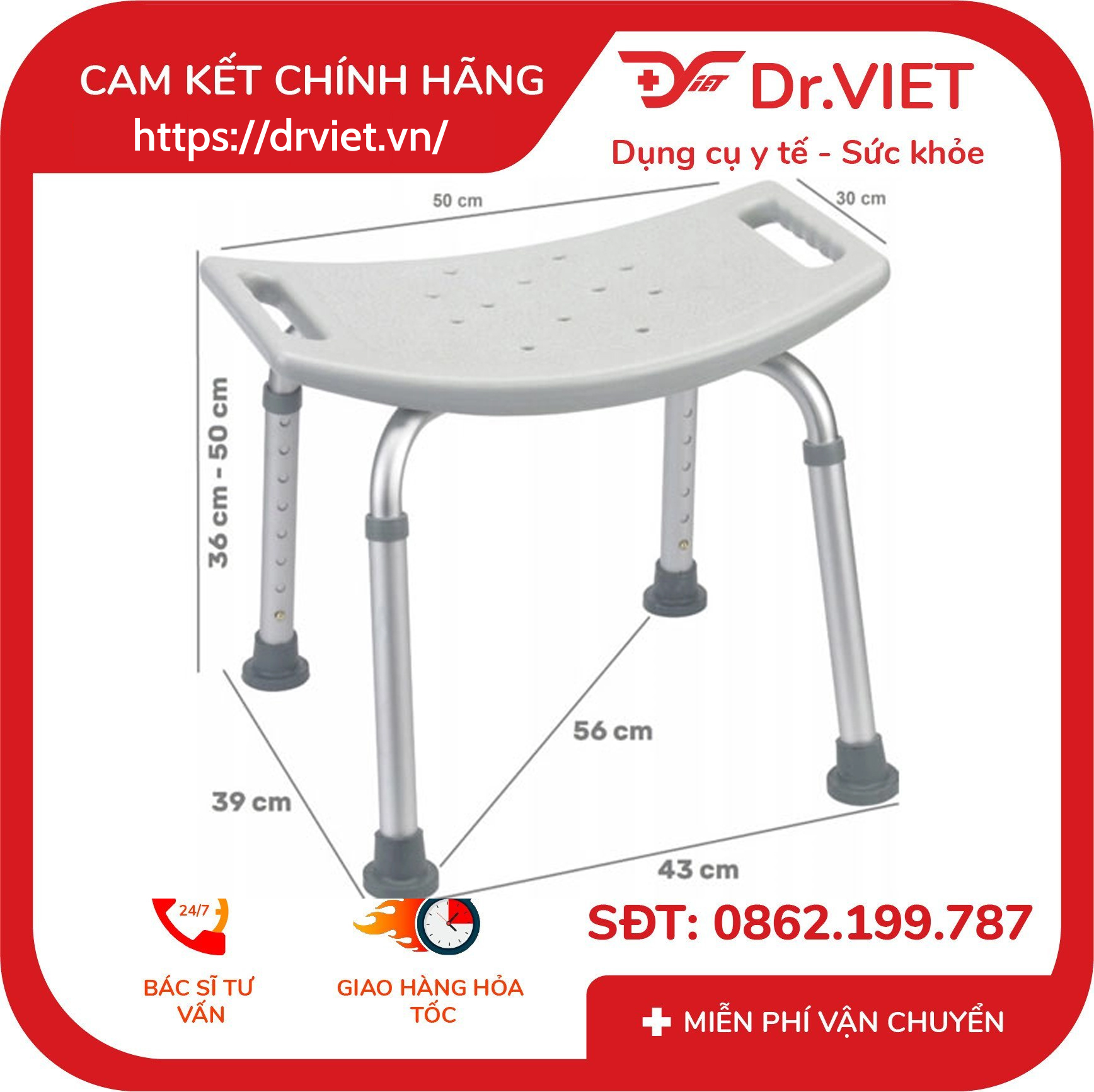 – Khung Ghế tắm được làm bằng NHÔM, chắc chắn và không bị han gỉ.