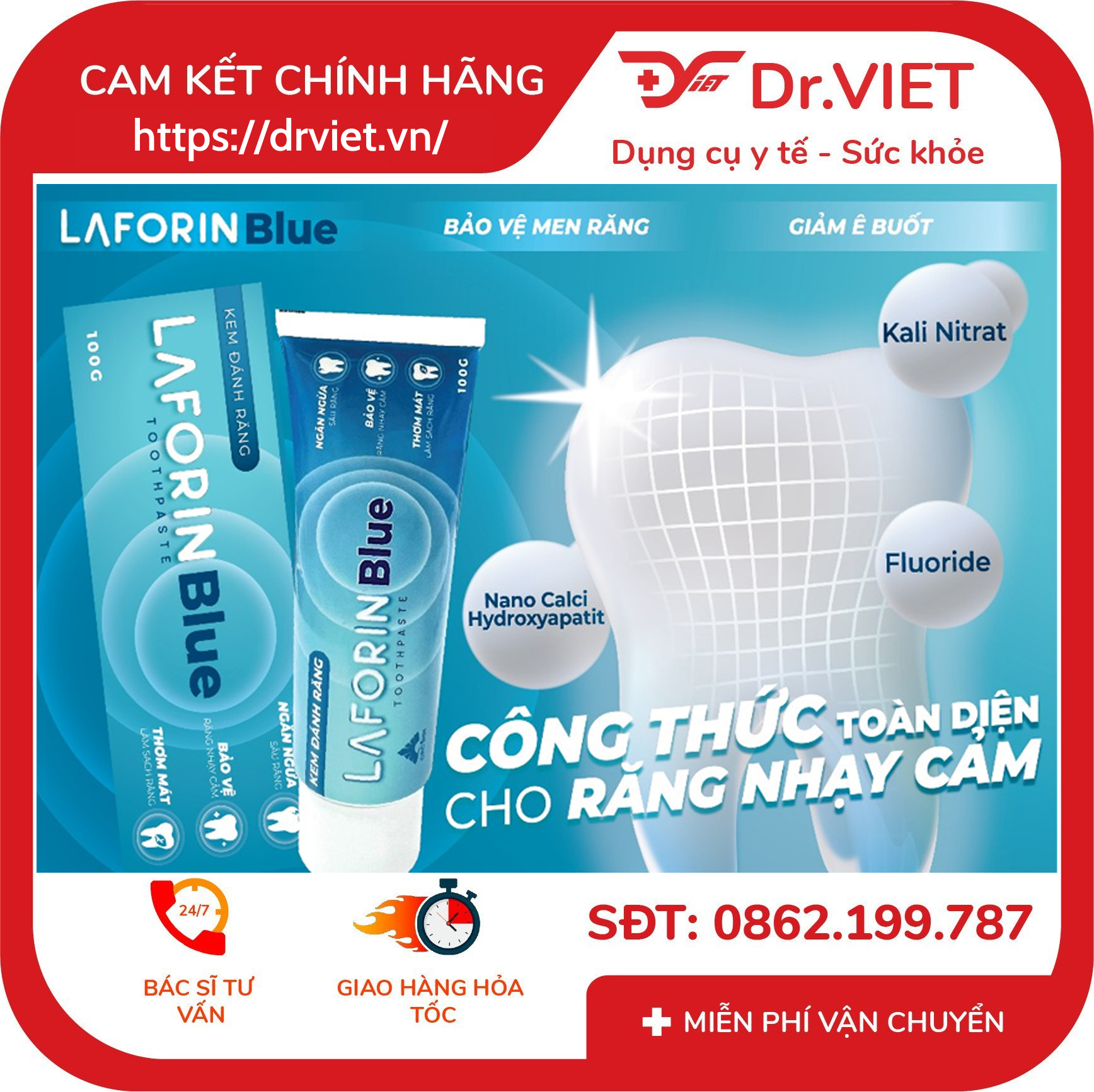 - Laforin Blue đa cơ chế trong 1 sản phẩm, có bổ sung thêm Nano Cali Hydroxyapatit và KNO3. Giúp tác dụng nhanh và kéo dài hơn