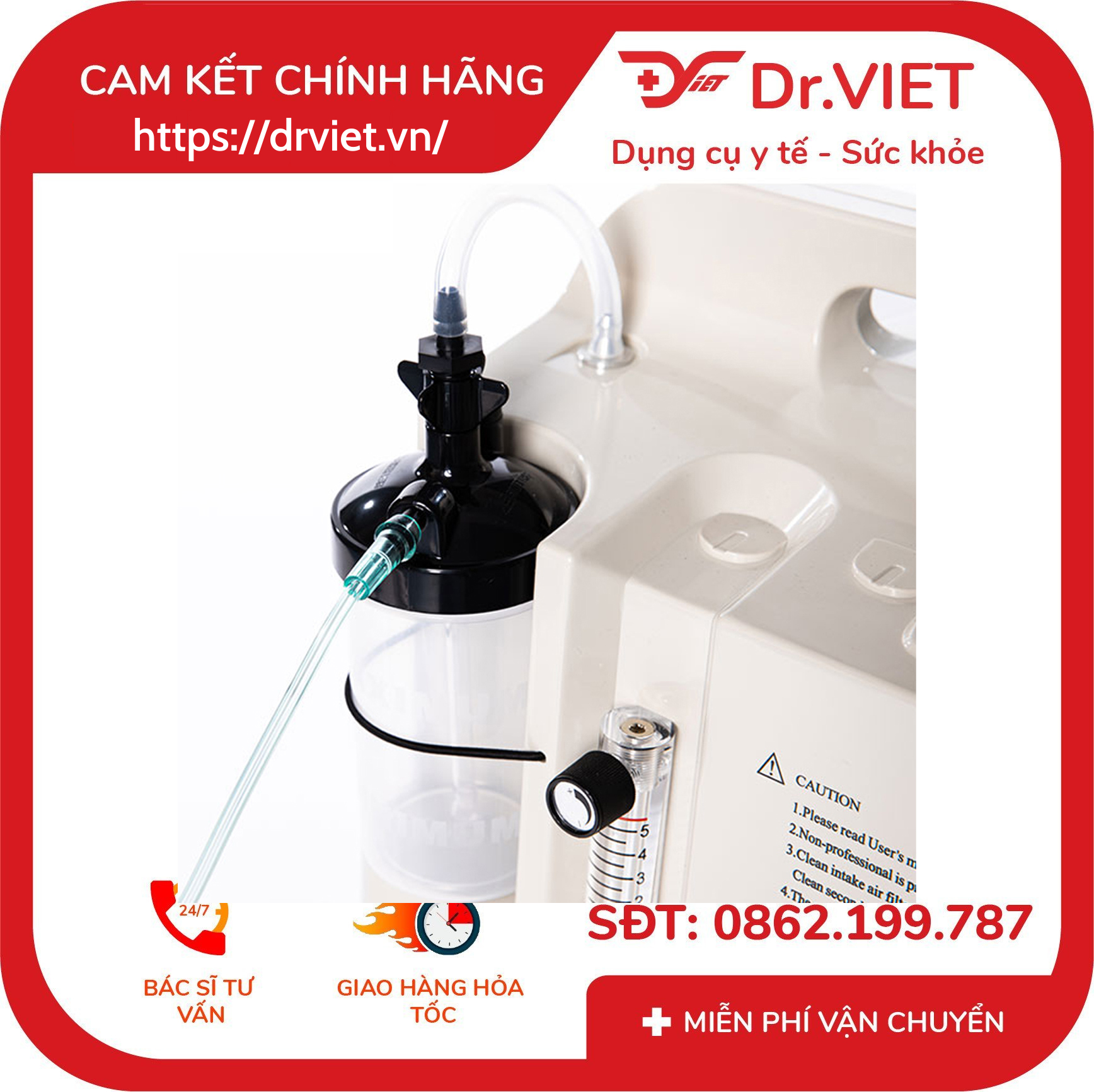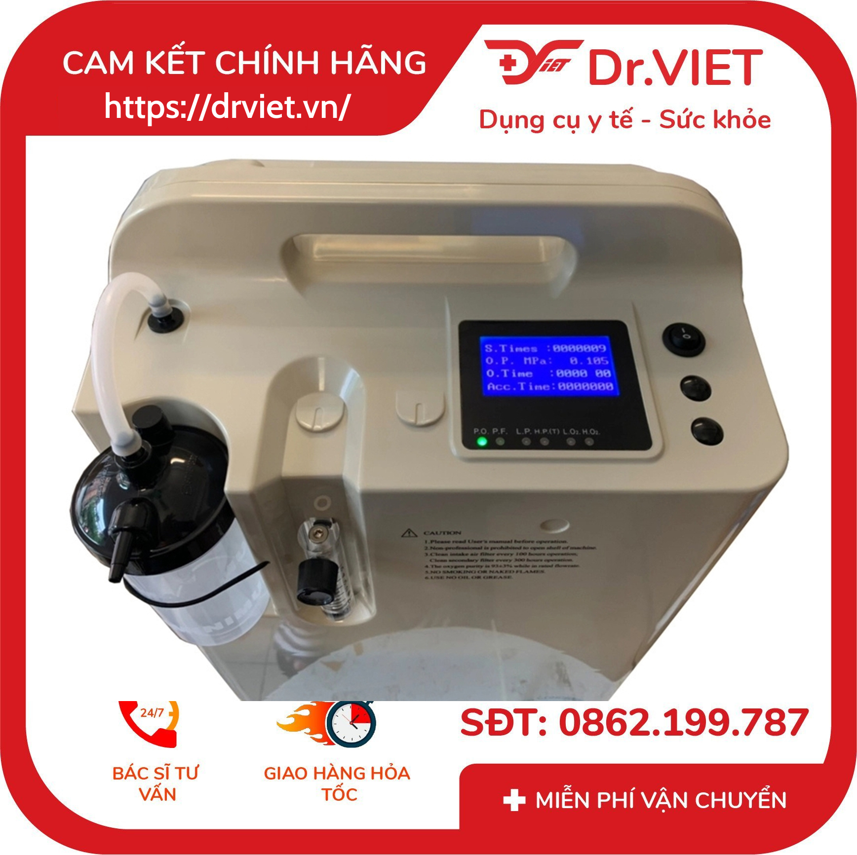 Phụ kiện bao gồm: máy JAY-5BW, bình tạo ẩm, dây thở, dây nguồn, 2 bộ lọc (bộ lọc thô, bộ lọc đầu vào oxy), sách HDSD, phiếu bảo hành 12 tháng