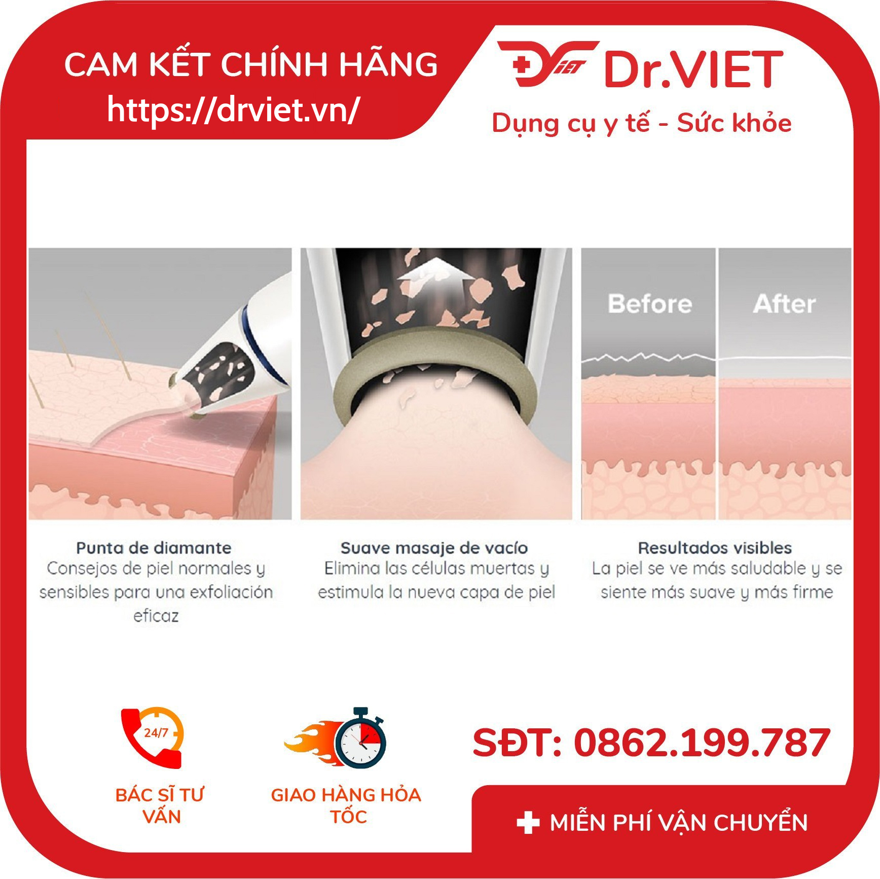 • Hai đầu kim cương giành cho làn da nhạy cảm và bình thường.