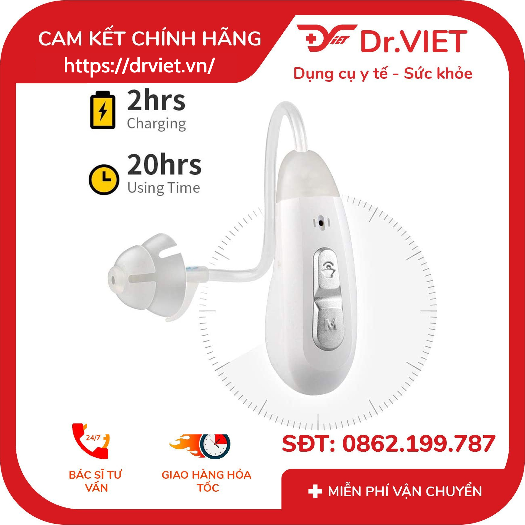 - Kiểu dáng: Vành tai (BTE)