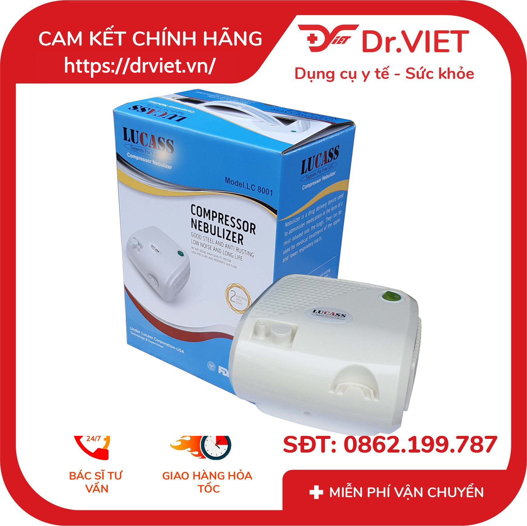 Máy xông khí dung Lucass LC 8002 là máy phun sương với hệ thống máy nén AC-powerd nhầm cung cấp thuốc dưới dạng nguồn khí nén cho các mục đích y tế sử dụng trong chăm sóc sức khỏe tại nhà. Nó được sử dụng để tạo ra các hạt khí dung của thuốc để điều trị đường hô hấp cho trẻ em và người lớn.