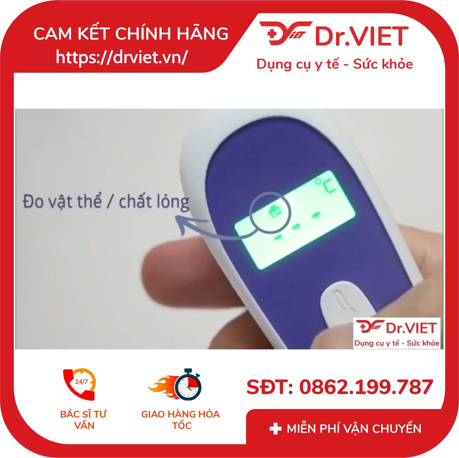 - Nhắm vào trán, qua vùng thái dương bên phải, từ khoảng cách khoảng 0cm ~ 3cm, nhấn nút đo của nhiệt kế và nhiệt độ sẽ được hiển thị ngay.