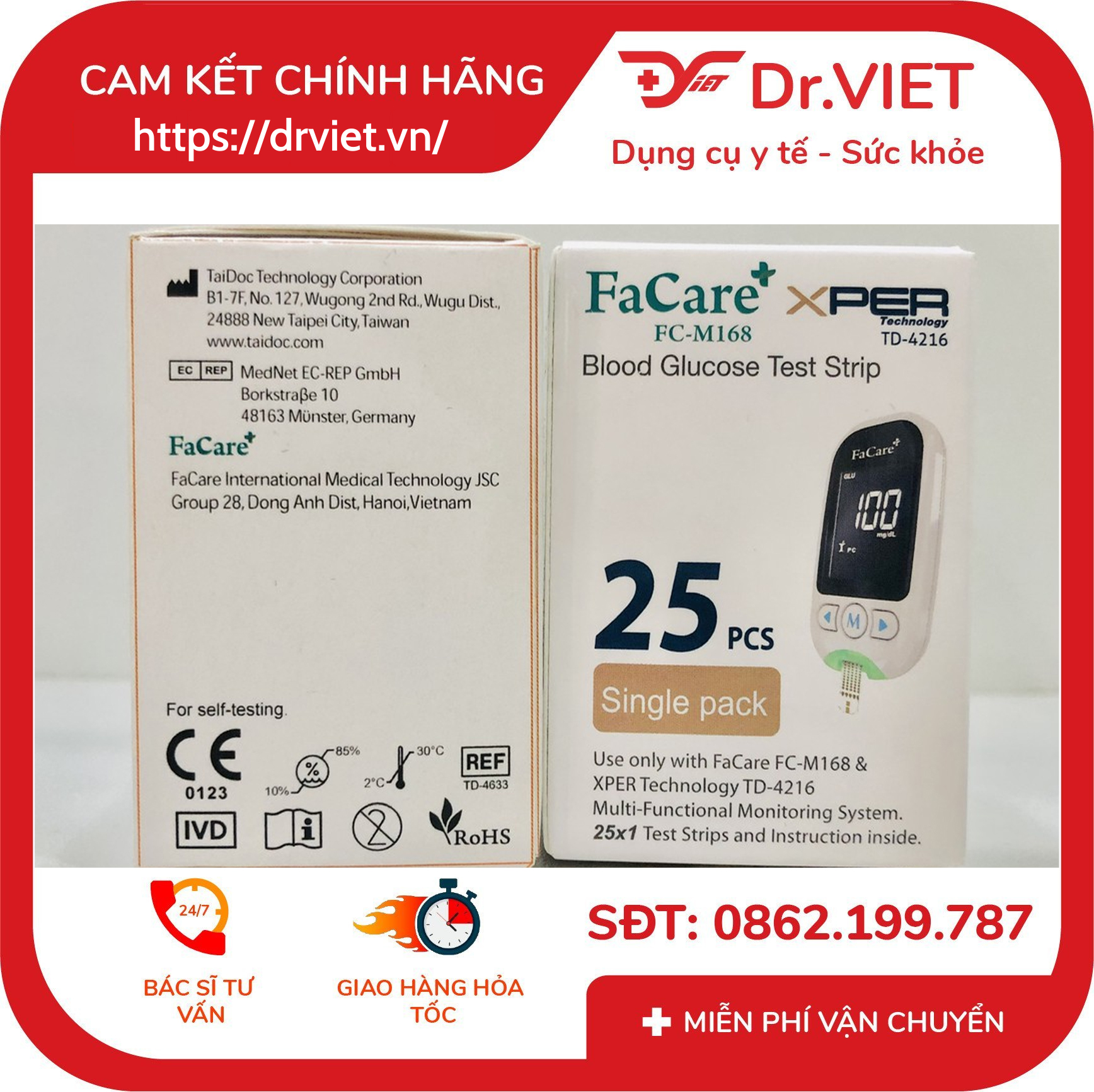Que thử đường huyết FaCare TD-4277 và FC-G168 không thể sử dụng cho các dòng máy khác ngay cả với dòng máy đo đa thông số 5 trong 1 FaCare Fc-M168 của thương hiệu thiết bị y tế FaCare. Que thử được dùng cùng máy thử để đo các chỉ số đường huyết.